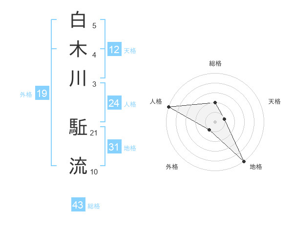 白木川 駈流さんを姓名の画数から五運を鑑定
