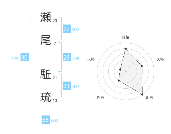 瀬尾 駈琉さんの総格は58画の4点!