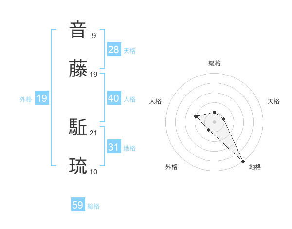 音藤 駈琉さんを姓名の画数から五運を鑑定