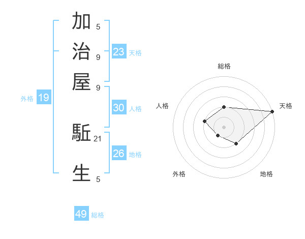 加治屋 駈生さんの天格は23画の5点