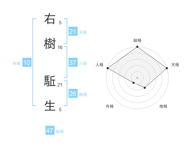 右樹 駈生さんの総格は47画の5点!