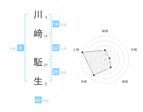 川﨑 駈生さんを姓名の画数から五運を鑑定