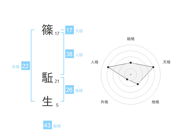 篠 駈生さんの人格は38画の4点!