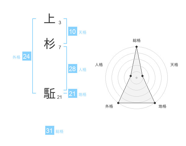 上杉 駈さんの総格は31画の5点!