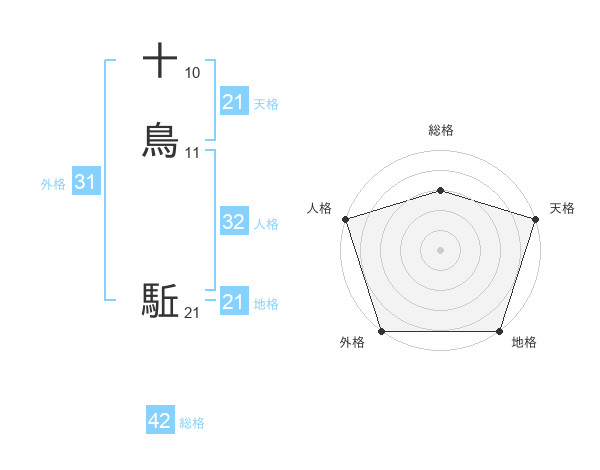 十鳥 駈さんの地格は21画の5点!