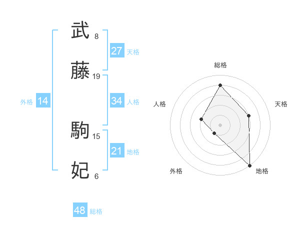 武藤 駒妃さんを姓名の画数から五運を鑑定