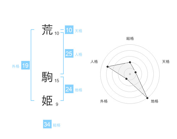 荒 駒姫さんを姓名の画数から五運を鑑定