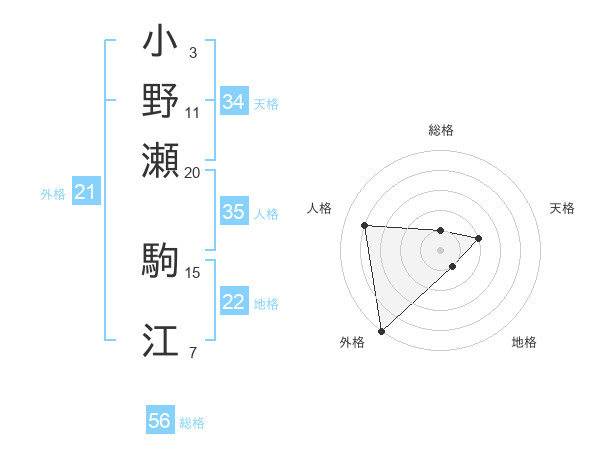 小野瀬 駒江さんを姓名の画数から五運を鑑定