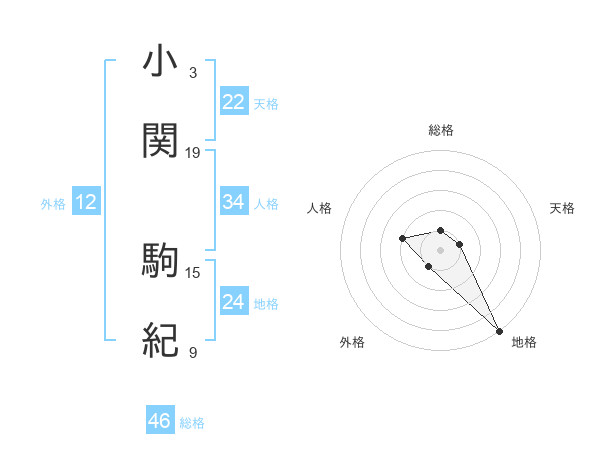 小関 駒紀さんを姓名の画数から五運を鑑定