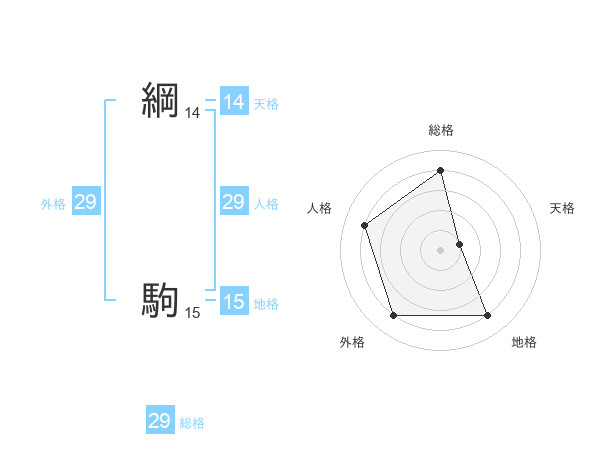 綱 駒さんの総格は29画の4点!