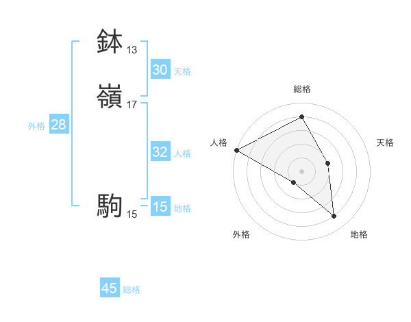 鉢嶺 駒さんの総格は45画の4点!