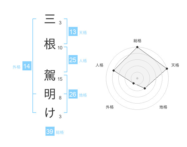 三根 駕明けさんを姓名の画数から五運を鑑定
