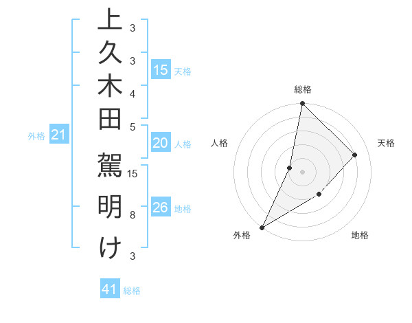 上久木田 駕明けさんを姓名の画数から五運を鑑定