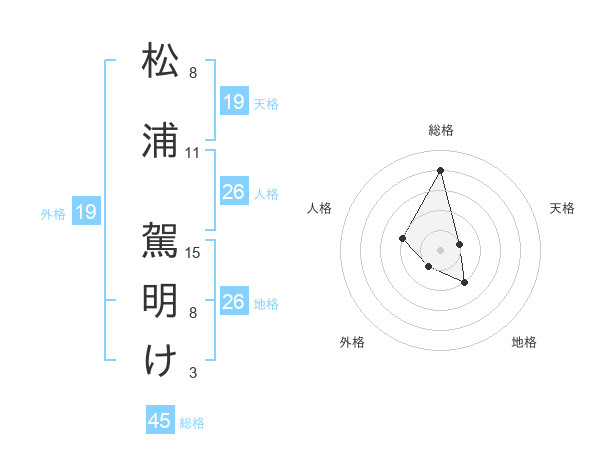 松浦 駕明けさんを姓名の画数から五運を鑑定