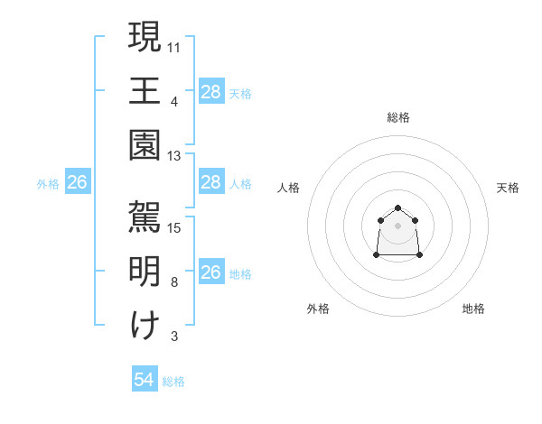 現王園 駕明けさんの総格は54画の1点