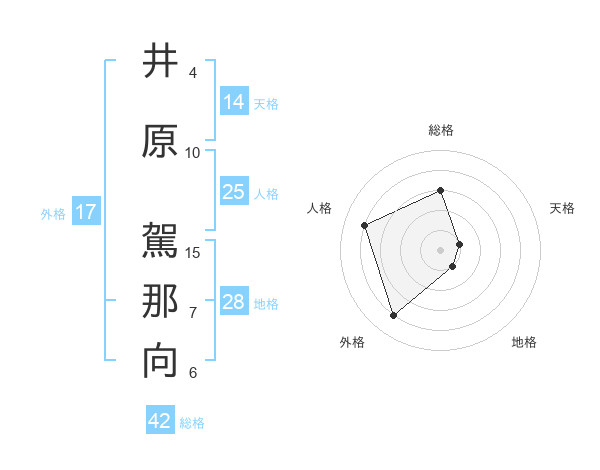 井原 駕那向さんを姓名の画数から五運を鑑定