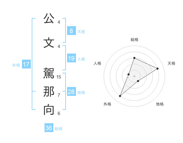 公文 駕那向さんを姓名の画数から五運を鑑定