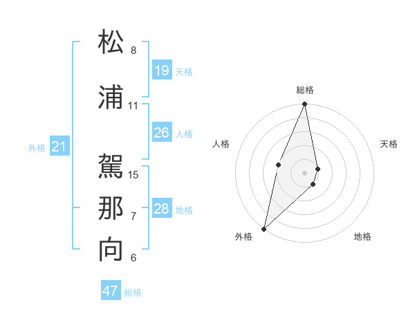松浦 駕那向さんを姓名の画数から五運を鑑定