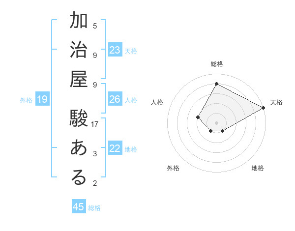 加治屋 駿あるさんの天格は23画の5点!