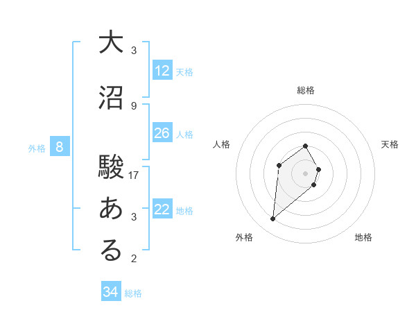 大沼 駿あるさんの総格は34画の2点