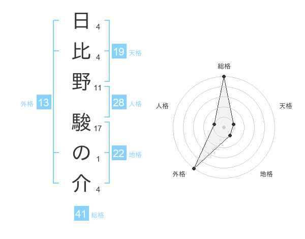 日比野 駿の介さんを姓名の画数から五運を鑑定
