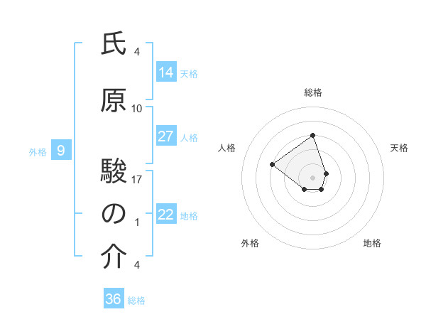 氏原 駿の介さんを姓名の画数から五運を鑑定