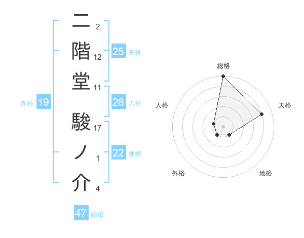 二階堂 駿ノ介さんを姓名の画数から五運を鑑定