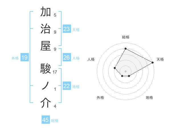 加治屋 駿ノ介さんの天格は23画の5点!