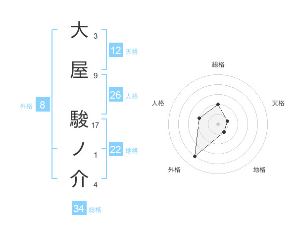 大屋 駿ノ介さんを姓名の画数から五運を鑑定