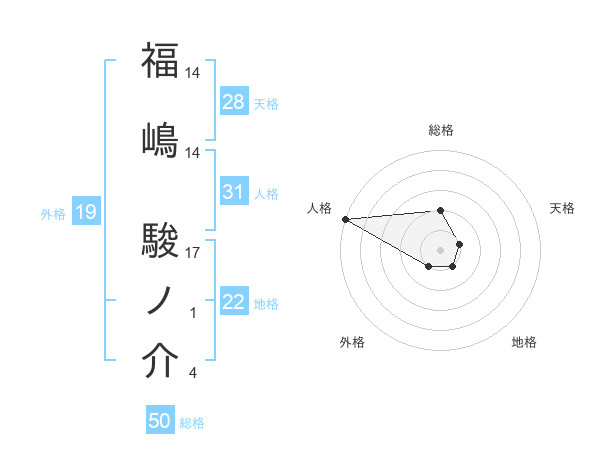 福嶋 駿ノ介さんの総格は50画の2点!