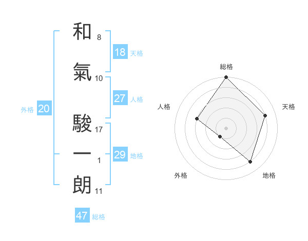 和氣 駿一朗さんを姓名の画数から五運を鑑定