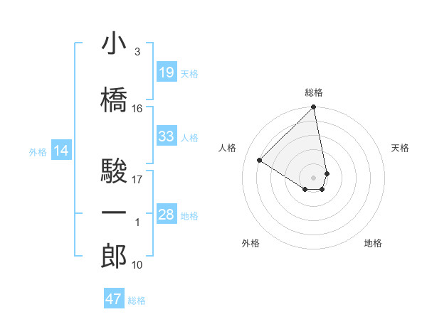 小橋 駿一郎さんを姓名の画数から五運を鑑定