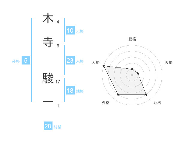木寺 駿一さんの人格は23画の5点!