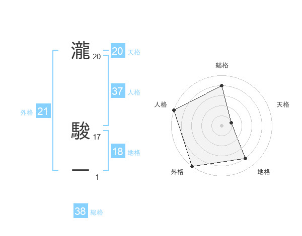 瀧 駿一さんの総格は38画の4点!