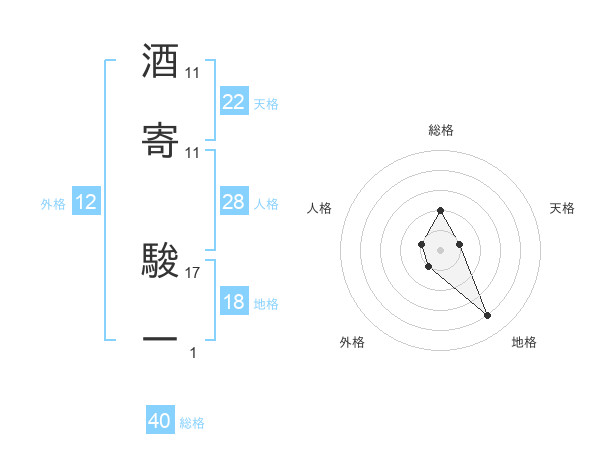 酒寄 駿一さんを姓名の画数から五運を鑑定