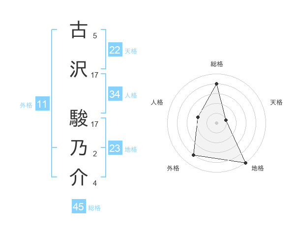古沢 駿乃介さんを姓名の画数から五運を鑑定