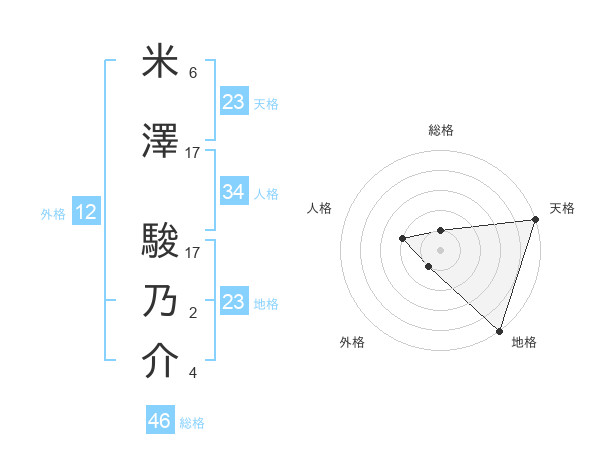米澤 駿乃介さんの天格は23画の5点!