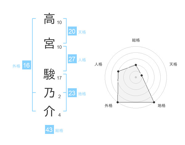高宮 駿乃介さんを姓名の画数から五運を鑑定