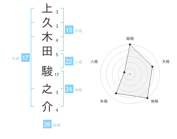 上久木田 駿之介さんを姓名の画数から五運を鑑定