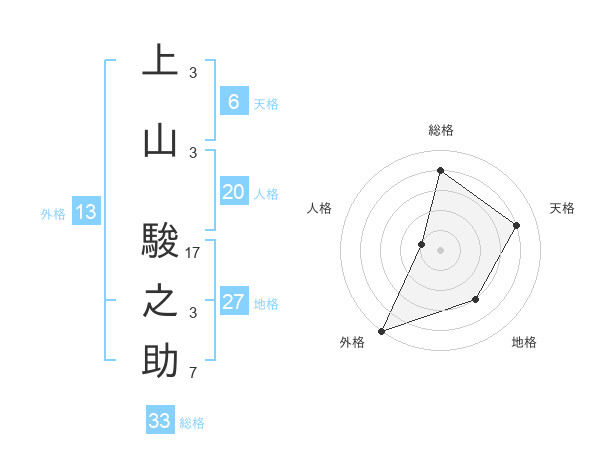 上山 駿之助さんを姓名の画数から五運を鑑定