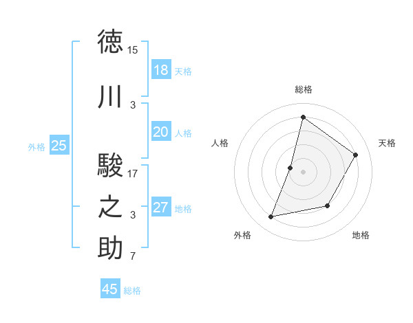 徳川 駿之助さんを姓名の画数から五運を鑑定
