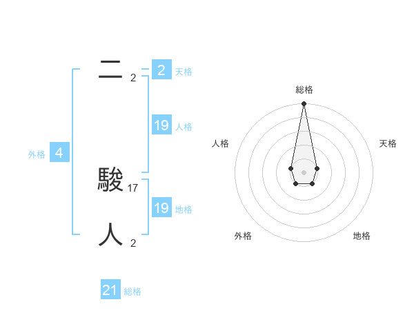二 駿人さんの総格は21画の5点!