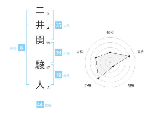 二井関 駿人さんの総格は44画の2点!
