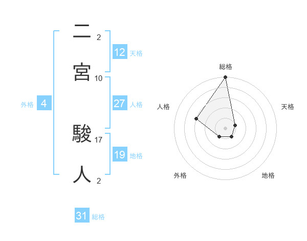 二宮 駿人さんの天格は12画の1点!