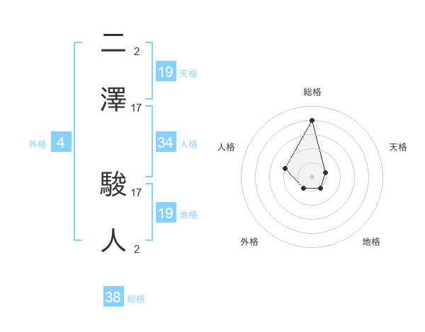 二澤 駿人さんを姓名の画数から五運を鑑定