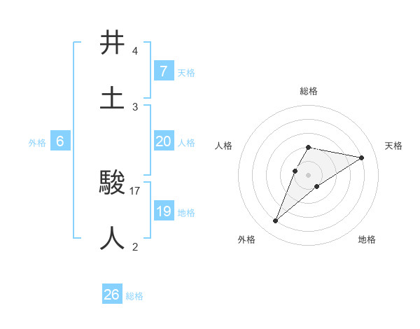井土 駿人さんの総格は26画の2点!