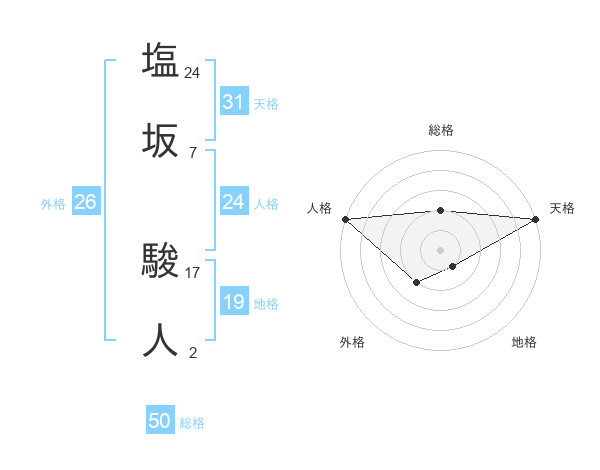 塩坂 駿人さんを姓名の画数から五運を鑑定
