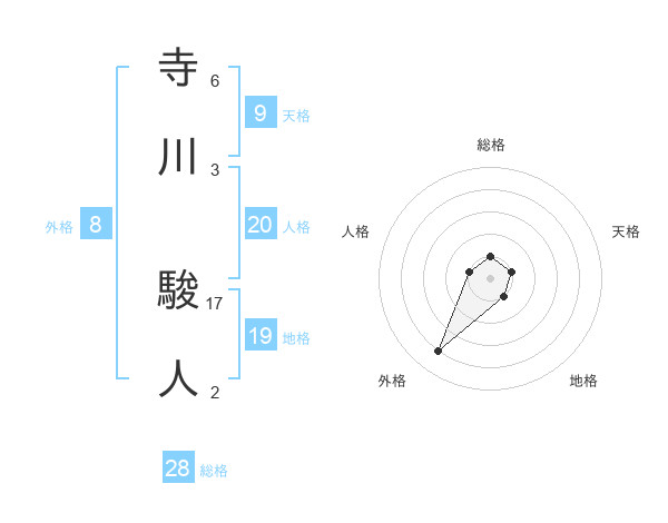 寺川 駿人さんを姓名の画数から五運を鑑定
