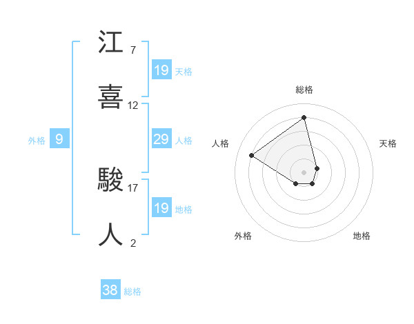 江喜 駿人さんの総格は38画の4点!
