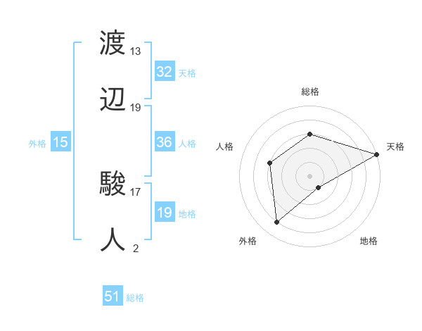 渡辺 駿人さんを姓名の画数から五運を鑑定